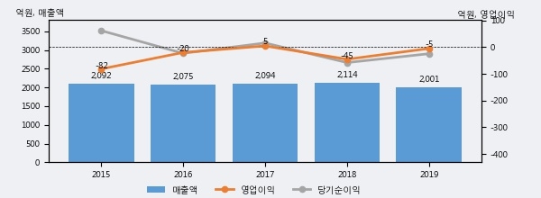 비비안은 2019년 매출액 2001억원과 영업이익 -5억원을 기록했다. 전년대비 매출은 -5.3% 하락했고, 영업이익은 전년에 이어 적자가 지속됐다. 이 회사의 매출액 증감률과 영업이익 증감률은 각각 코스피 하위 26%, 상위 18%에 해당된다.
