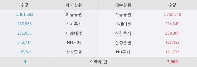 거래원 동향은 미래에셋, 삼성증권, NH투자 등이 매수 상위 목록에 나타나고 있다.