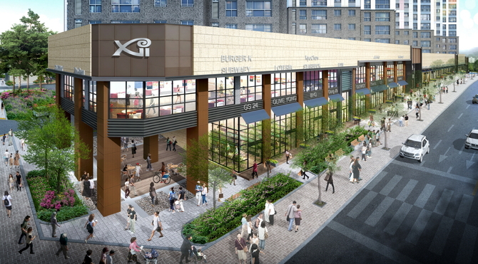 신천센트럴자이 단지 내 상가는 단지를 따라 스트리트형 2개동과 단독형 2개동 총 4개 동에 걸쳐 들어설 예정이다.