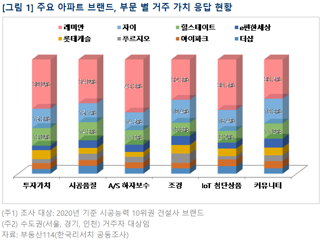 부동산114와 한국리서치가 공동으로 조사한 ‘아파트 브랜드 주거 만족도’ 설문조사의 오차 범위는 95% 신뢰수준에 ±2.0%p다.