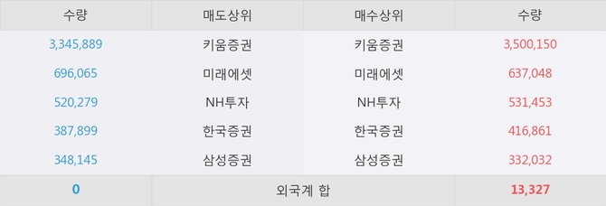 거래원 동향은 미래에셋, NH투자, 삼성증권 등이 매수 상위 목록에 나타나고 있다.