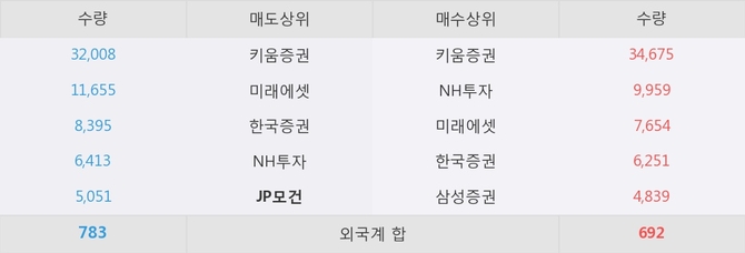 거래원 동향은 NH투자, 미래에셋, 삼성증권 등이 매수 상위 목록에 나타나고 있다. 한편, 매도 창구 상위에는 JP모건이 눈에 띄고 있다.