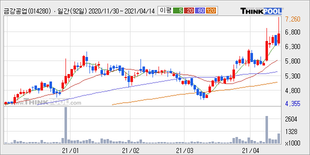 차트상 주가의 흐름은 현재 단기·중기 이평선이 정배열 상태로 전형적인 상승세를 보이고 있다. 이 종목의 차트에서 최근에 최근 60일 매물대 돌파, 최근 5일 매물대 돌파 등을 확인할 수 있다