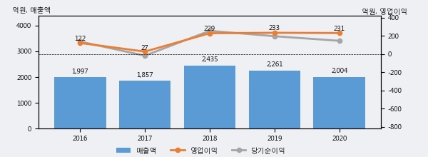 아바코는 2020년 매출액 2004억원과 영업이익 231억원을 기록했다. 전년대비 매출은 -11.4%, 영업이익은 -1.1% 각각 하락했다. 이 회사의 매출액 증감률과 영업이익 증감률은 각각 코스닥 하위 29%, 하위 49%에 해당된다.