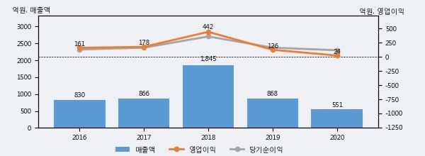 야스의 2020년 매출액은 551억으로 전년대비 -36.6% 하락했고, 영업이익 역시 24억으로 전년대비 -81.3% 하락했다. 이 회사의 매출액 증감률과 영업이익 증감률은 각각 코스닥 하위 9%, 하위 22%에 해당된다.