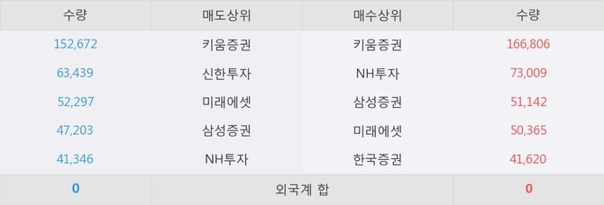 거래원 동향은 NH투자, 삼성증권, 미래에셋 등이 매수 상위 목록에 나타나고 있다.
