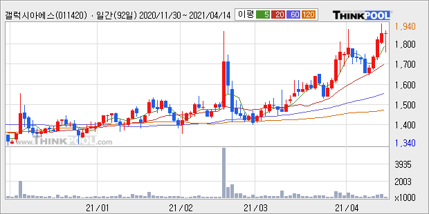 갤럭시아에스엠의 2020년 매출액은 195억으로 전년대비 -32.0% 하락했고, 영업이익은 14억으로 흑자전환했다. 이 회사의 매출액 증감률과 영업이익 증감률은 각각 코스피 하위 8%, 상위 5%에 해당된다.