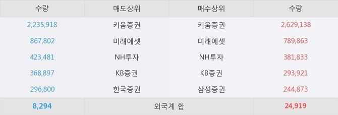 거래원 동향은 미래에셋, NH투자, 삼성증권 등이 매수 상위 목록에 나타나고 있다.