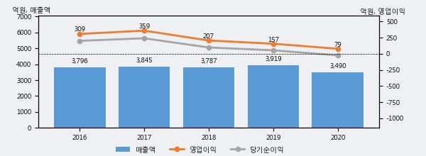 상신브레이크의 2020년 매출액은 전년대비 -10.9% 줄어든 3490억원이고, 영업이익 역시 전년대비 -49.9% 줄어든 79억원을 기록했다. 이 회사의 매출액 증감률과 영업이익 증감률은 각각 코스피 하위 30%, 하위 25%에 해당된다.