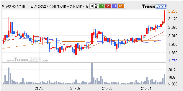 인산가의 2020년 매출액은 전년대비 17.8% 늘어난 305억원이고, 영업이익 또한 전년대비 43.1% 늘어난 57억원을 기록했다. 이 회사의 매출액 증감률과 영업이익 증감률은 각각 코스닥 상위 25%, 상위 32%에 해당된다.