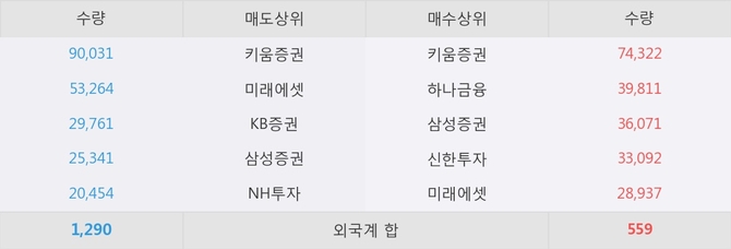 거래원 동향은 하나금융, 삼성증권, 미래에셋 등이 매수 상위 목록에 나타나고 있다.