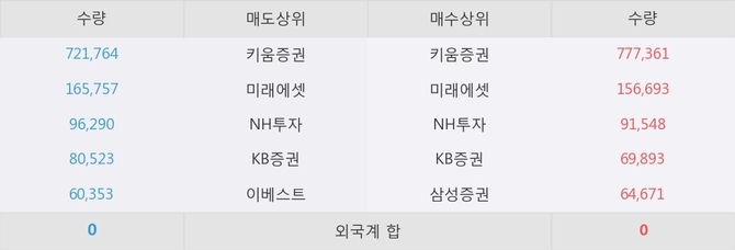 거래원 동향은 미래에셋, NH투자, 삼성증권 등이 매수 상위 목록에 나타나고 있다.