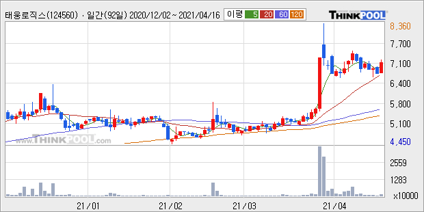 태웅로직스의 2020년 매출액은 전년대비 19.3% 늘어난 3413억원이고, 영업이익은 전년대비 -2.2% 줄어든 146억원을 기록했다. 이 회사의 매출액 증감률과 영업이익 증감률은 각각 코스닥 상위 23%, 하위 49%에 해당된다.