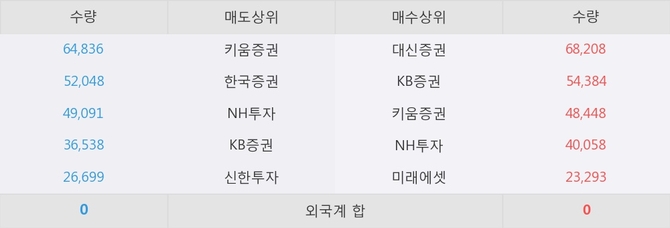 아직까지 외국계 증권사 창구를 통한 매매는 발생하지 않고 있다. 그리고 이 시간 KB증권이 매수창구상위에 올라있는 종목은 이 종목 이외에도 동양에스텍, 세화피앤씨 등이 있다.