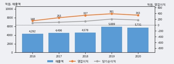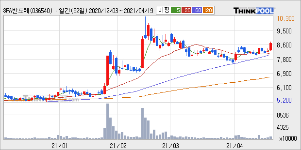 SFA반도체의 2020년 매출액은 전년대비 -2.7% 줄어든 5731억원이고, 영업이익 역시 전년대비 -12.3% 줄어든 343억원을 기록했다. 이 회사의 매출액 증감률과 영업이익 증감률은 각각 코스닥 하위 44%, 하위 44%에 해당된다.