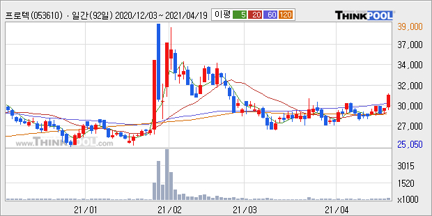 프로텍의 2020년 매출액은 전년대비 -51.9% 줄어든 865억원이고, 영업이익 역시 전년대비 -66.5% 줄어든 154억원을 기록했다. 이 회사의 매출액 증감률과 영업이익 증감률은 각각 코스닥 하위 5%, 하위 25%에 해당된다.