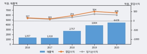 최근 3년간의 실적을 살펴보면 안정적 성장세를 보이고 있다. 최근 3년간 매출로 볼 때 매년 증가하고 있다. 다만 최근에 그 증가폭이 다소 감소하고 있다.