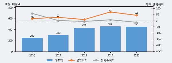 AP위성의 2020년 매출액은 전년대비 -0.6% 줄어든 454억원이고, 영업이익 역시 전년대비 -38.5% 줄어든 44억원을 기록했다. 이 회사의 매출액 증감률과 영업이익 증감률은 각각 코스닥 하위 49%, 하위 33%에 해당된다.
