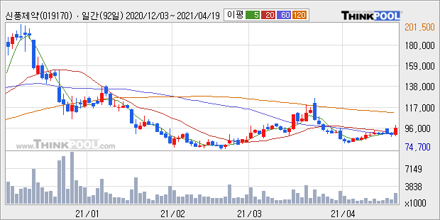 신풍제약의 2020년 매출액은 전년대비 4.2% 늘어난 1978억원이고, 영업이익 또한 전년대비 40.2% 늘어난 78억원을 기록했다. 이 회사의 매출액 증감률과 영업이익 증감률은 각각 코스피 상위 30%, 상위 29%에 해당된다.