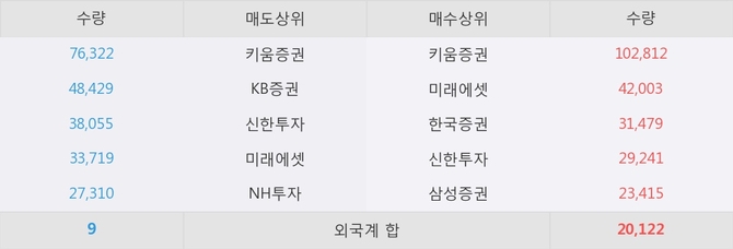 거래원 동향은 미래에셋, 삼성증권 등이 매수 상위 목록에 나타나고 있다.