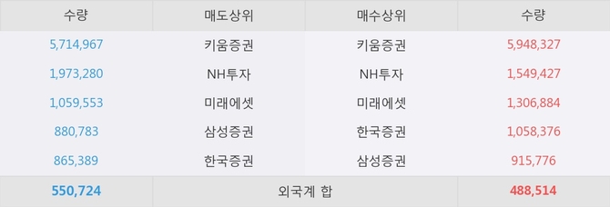 거래원 동향은 NH투자, 미래에셋, 삼성증권 등이 매수 상위 목록에 나타나고 있다.
