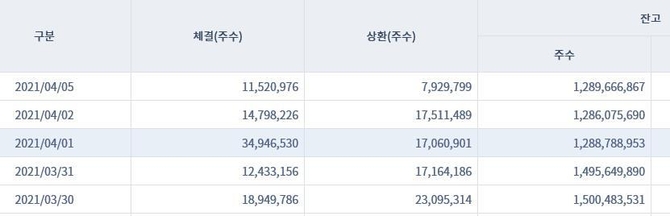 지난 1일 대차계약이 체결된 주식은 3천494만주, 상환된 주식은 1천706만주였다. 잔량은 1억5천135만주가 돼야 하지만 통계는 이보다 2억2천만주가 낮은 것이다. 이에 3월까지 15억주 안팎이었던 잔고는 이달 들어 13억주 안팎으로 줄어들었다.