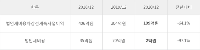 드림텍의 지난 3년 동안 법인세 납부액 추이를 보면 2019년에는 증가했으나, 작년에는 2억원으로 크게 감소했다.