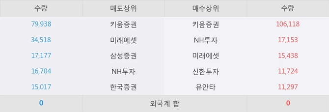 거래원 동향은 NH투자, 미래에셋 등이 매수 상위 목록에 나타나고 있다.
