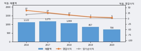 최근 3년간의 실적을 살펴보면, 매출액은 3년 연속 하락하고 있으나 그 하락폭은 줄어들고 있음을 알 수 있다.
