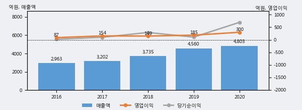 최근 3년간의 실적을 살펴보면 안정적 성장세를 보이고 있다. 최근 3년간 매출로 볼 때 매년 꾸준히 증가하고 있다. 다만 최근에 그 증가폭이 다소 감소하고 있다.