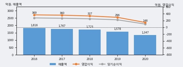 최근 3년간의 실적을 살펴보면, 매출액은 3년 연속 하락하고 있고 그 하락폭이 확대되고 있어서 투자자들은 주의깊게 살펴볼 필요가 있다.