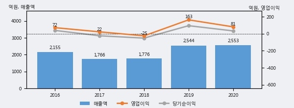 최근 3년간의 실적을 살펴보면 안정적 성장세를 보이고 있다. 최근 3년간 매출로 볼 때 매년 증가하고 있다. 다만 최근에 그 증가폭이 다소 감소하고 있다.