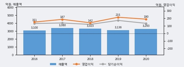 한전산업의 2020년 매출액은 3293억으로 전년대비 5.0% 상승했고, 영업이익은 190억으로 전년대비 -11.7% 하락했다. 이 회사의 매출액 증감률과 영업이익 증감률은 각각 코스피 상위 27%, 하위 40%에 해당된다.