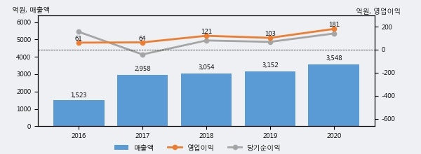 최근 3년간의 실적을 살펴보면 안정적 성장세를 보이고 있다. 최근 3년간 매출로 볼 때 매년 꾸준히 증가하고 있고 그 증가폭도 확대되고 있다.