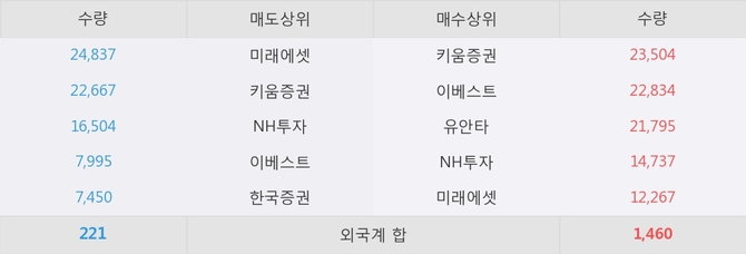 거래원 동향은 NH투자, 미래에셋 등이 매수 상위 목록에 나타나고 있다.