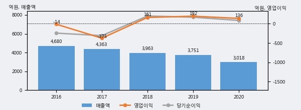최근 3년간의 실적을 살펴보면, 매출액은 3년 연속 하락하고 있고 그 하락폭이 확대되고 있어서 투자자들은 주의깊게 살펴볼 필요가 있다.