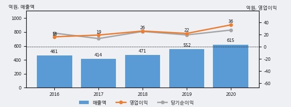 최근 3년간의 실적을 살펴보면 안정적 성장세를 보이고 있다. 최근 3년간 매출로 볼 때 매년 증가하고 있다. 다만 최근에 그 증가폭이 다소 감소하고 있다.