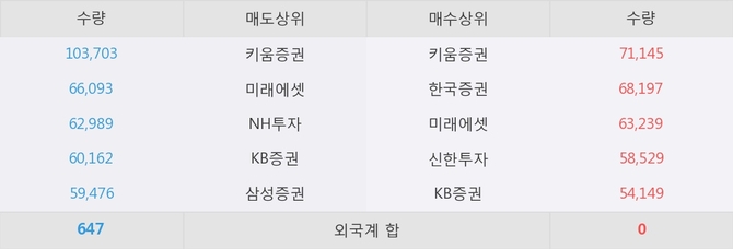 이 시각 주요 거래원은 미래에셋, 키움증권, 한국증권 등이 매수 상위 창구에 자리하고 있다.