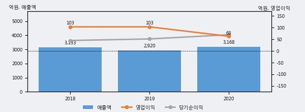 최근 실적을 살펴보면 2020년 매출액이 최근 3년 중 가장 높은 실적을 기록했음을 알 수 있다. 이전 최고 실적이었던 2018년 보다도 1.1%(34억 9천만원) 늘어난 것으로 나타났다.