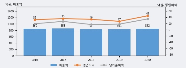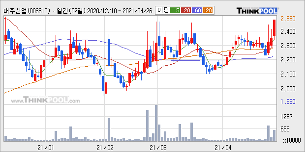 대주산업의 2020년 매출액은 852억으로 전년대비 1.0% 상승했고, 영업이익 또한 45억으로 전년대비 65.6% 상승했다. 이 회사의 매출액 증감률과 영업이익 증감률은 각각 코스닥 상위 49%, 상위 24%에 해당된다.