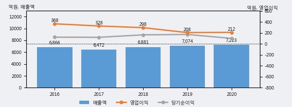 최근 3년간의 실적을 살펴보면 안정적 성장세를 보이고 있다. 최근 3년간 매출로 볼 때 매년 증가하고 있다. 다만 최근에 그 증가폭이 다소 감소하고 있다.