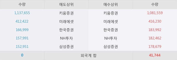 거래원 동향은 미래에셋, NH투자, 삼성증권 등이 매수 상위 목록에 나타나고 있다.