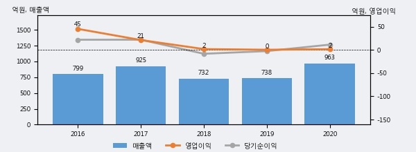 최근 실적을 살펴보면 2020년 매출액이 최근 5년 중 가장 높은 실적을 기록했음을 알 수 있다. 이전 최고 실적이었던 2017년 보다도 4.1%(37억 5천만원) 늘어난 것으로 나타났다.