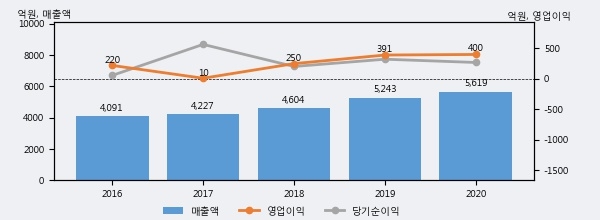 최근 3년간의 실적을 살펴보면 안정적 성장세를 보이고 있다. 최근 3년간 매출로 볼 때 매년 꾸준히 증가하고 있다. 다만 최근에 그 증가폭이 다소 감소하고 있다.