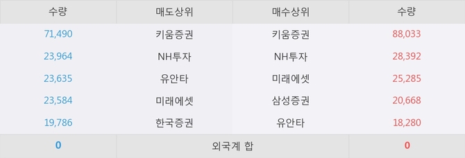 거래원 동향은 NH투자, 미래에셋, 삼성증권 등이 매수 상위 목록에 나타나고 있다.