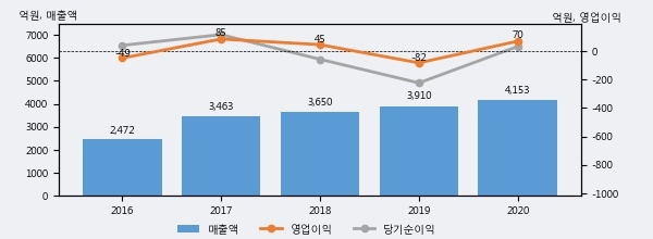 최근 3년간의 실적을 살펴보면 안정적 성장세를 보이고 있다. 최근 3년간 매출로 볼 때 매년 꾸준히 증가하고 있다. 다만 최근에 그 증가폭이 다소 감소하고 있다.