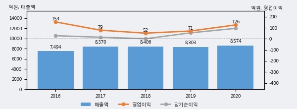 최근 실적을 살펴보면 2020년 매출액이 최근 5년 중 가장 높은 실적을 기록했음을 알 수 있다. 이전 최고 실적이었던 2018년 보다도 2.0%(167억 7천만원) 늘어난 것으로 나타났다.