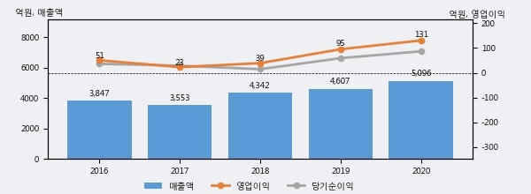 최근 3년간의 실적을 살펴보면 안정적 성장세를 보이고 있다. 최근 3년간 매출로 볼 때 매년 증가하고 있고 그 증가폭도 확대되고 있다.