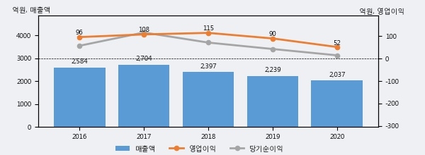 최근 3년간의 실적을 살펴보면, 매출액은 3년 연속 하락하고 있고 그 하락폭이 확대되고 있어서 투자자들은 주의깊게 살펴볼 필요가 있다.