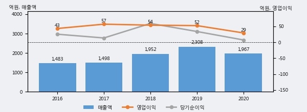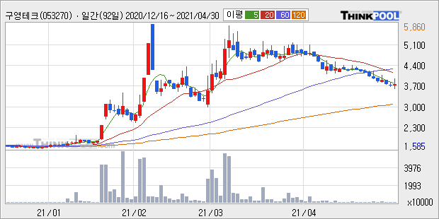 구영테크의 2020년 매출액은 1967억으로 전년대비 -14.8% 하락했고, 영업이익 역시 29억으로 전년대비 -43.9% 하락했다. 이 회사의 매출액 증감률과 영업이익 증감률은 각각 코스닥 하위 25%, 하위 32%에 해당된다.